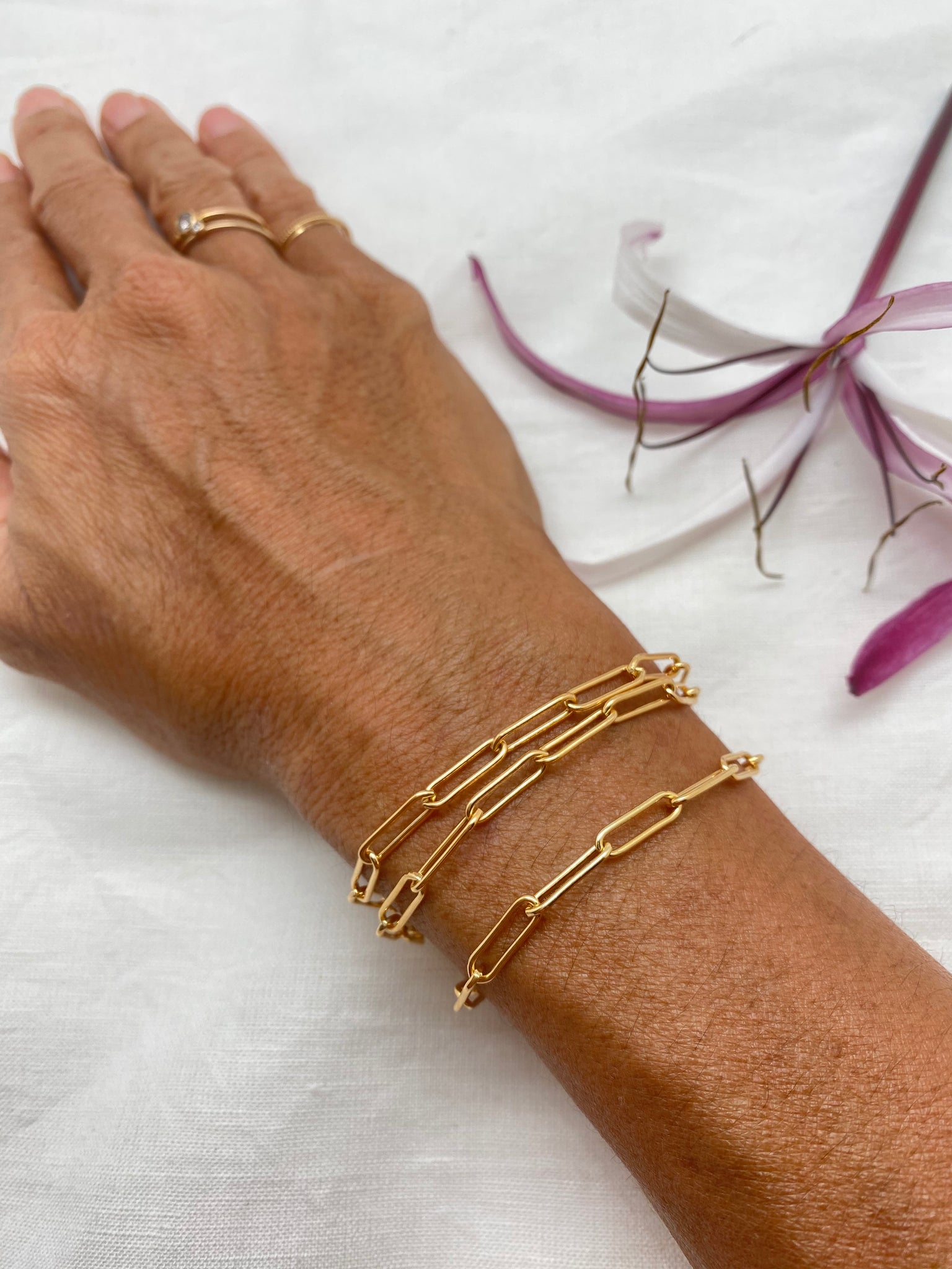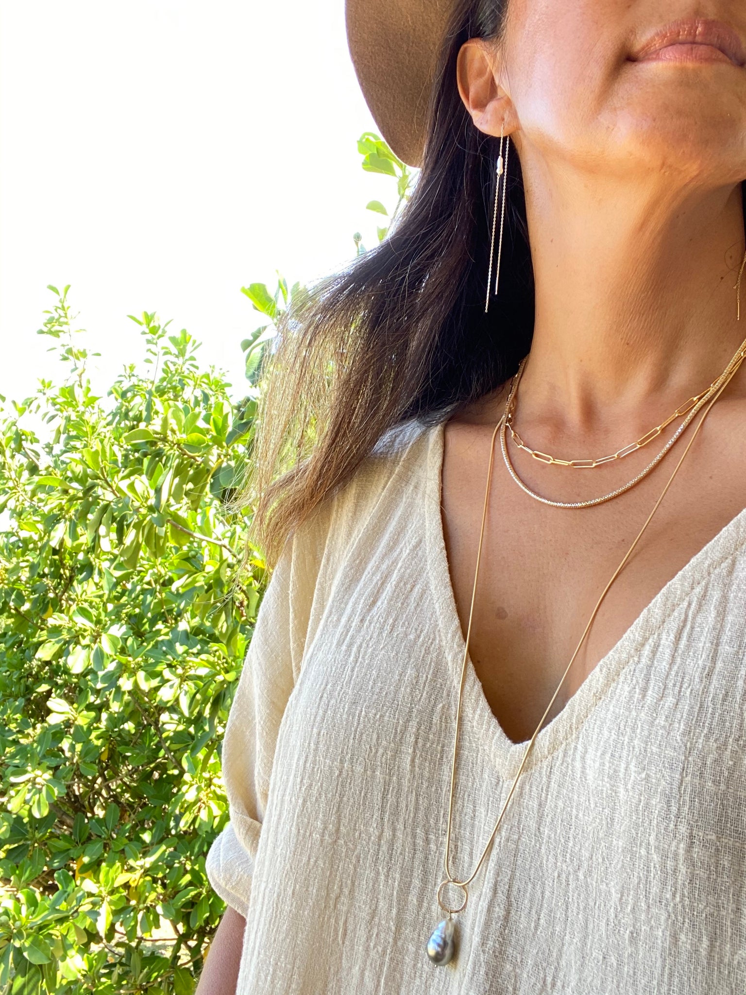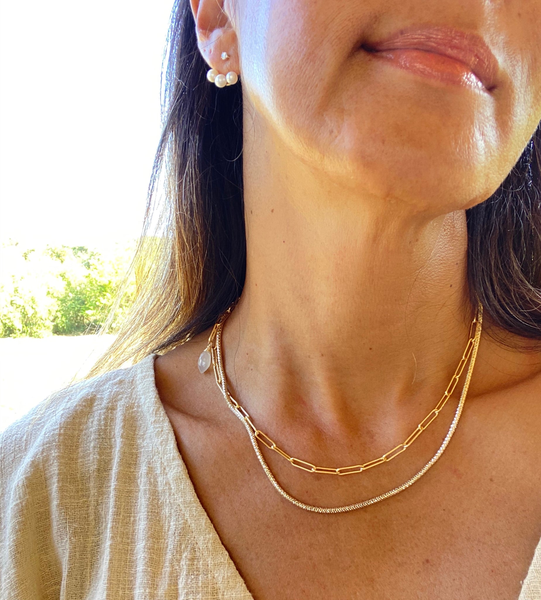 simple paperclip chain necklace with moonstone at the end.
